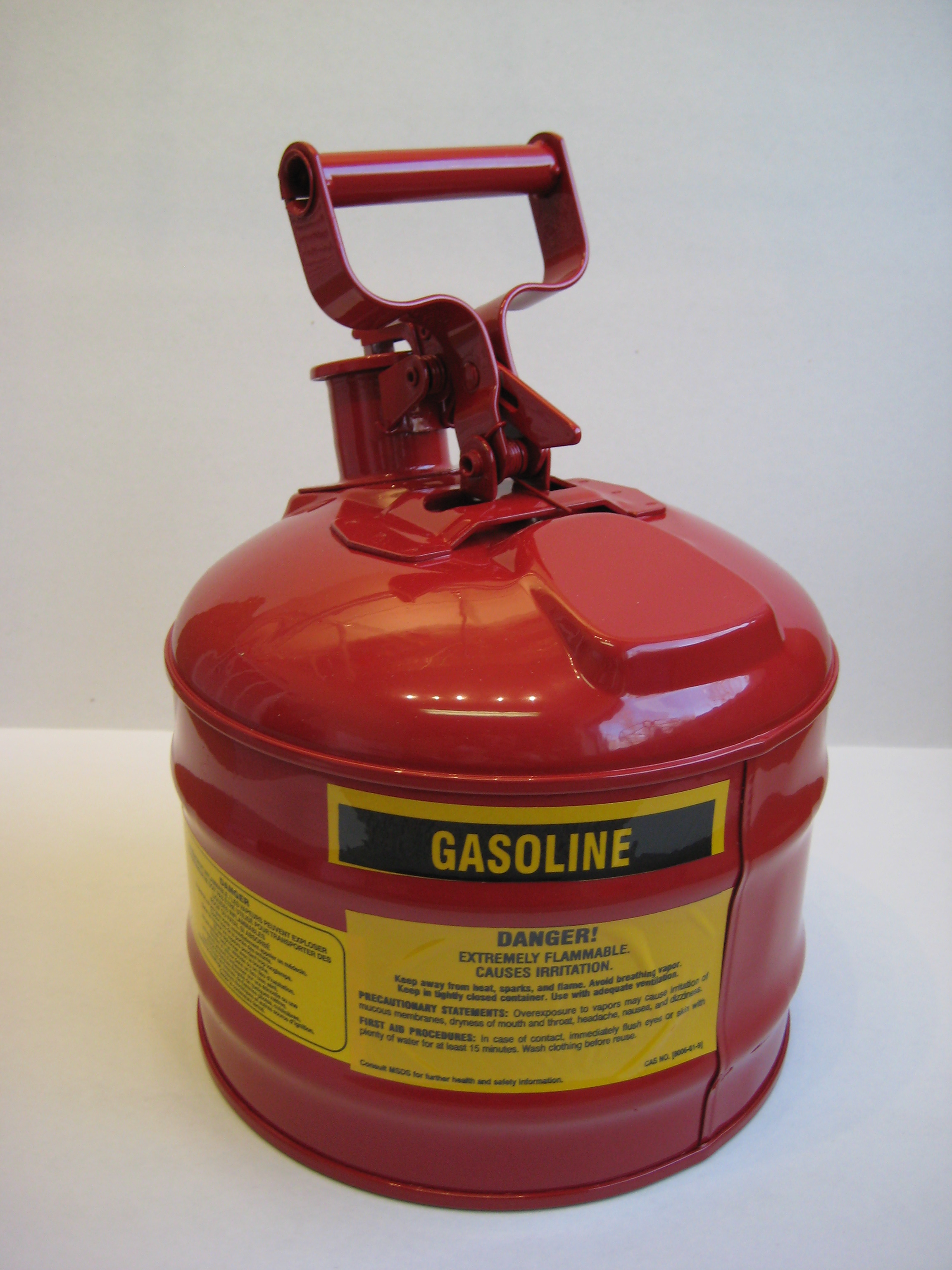 - PT3612R: A 2-gallon red waste can that is typically used for Gasoline. A 24 gauge metal container that has a swing handle and spring-loaded cap, with a powder coated exterior finish. Product and RTK safety decals attached to the can.